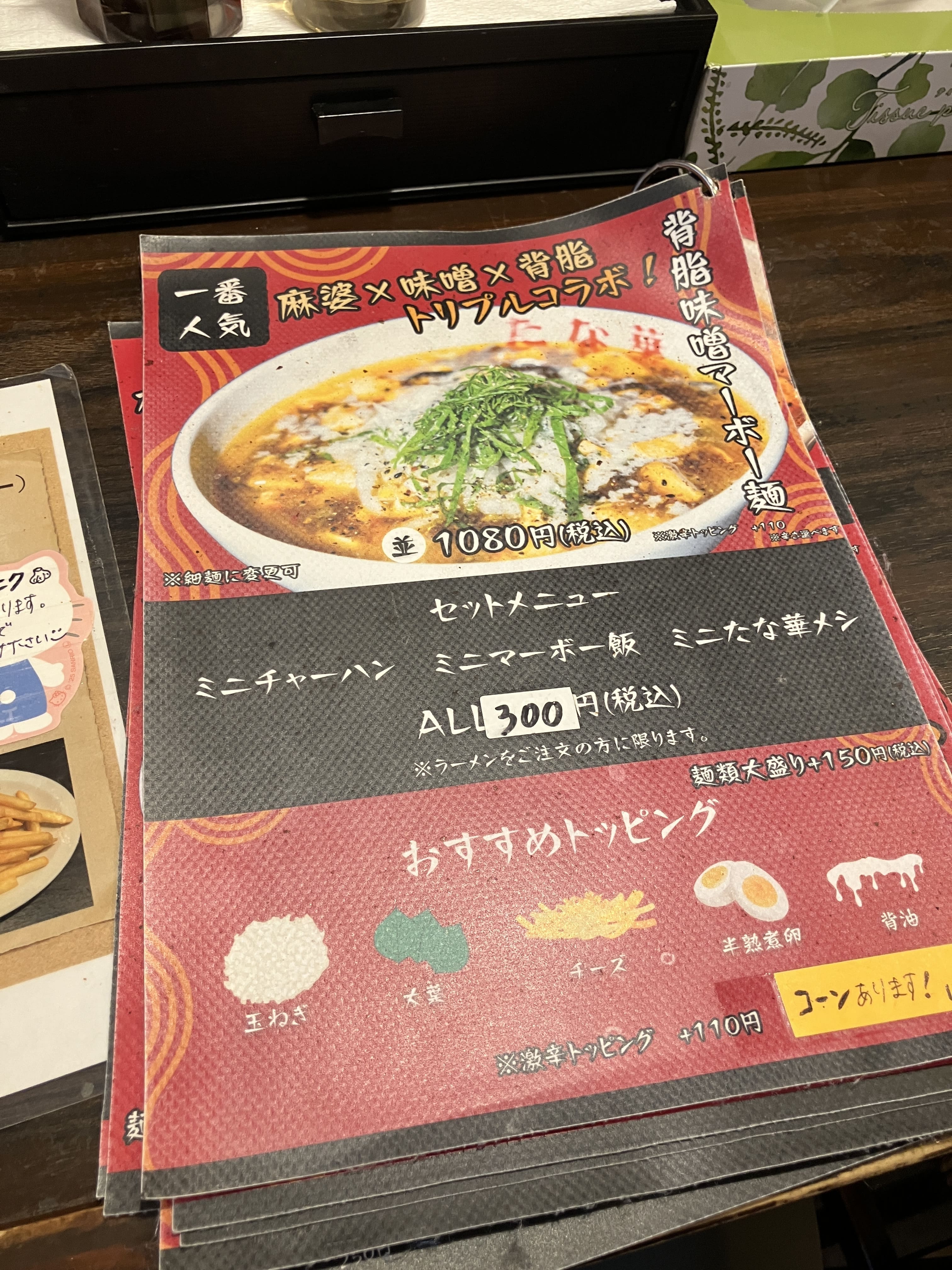 今回は、看板メニューの一つであるコク旨麻婆麺(990円)と、