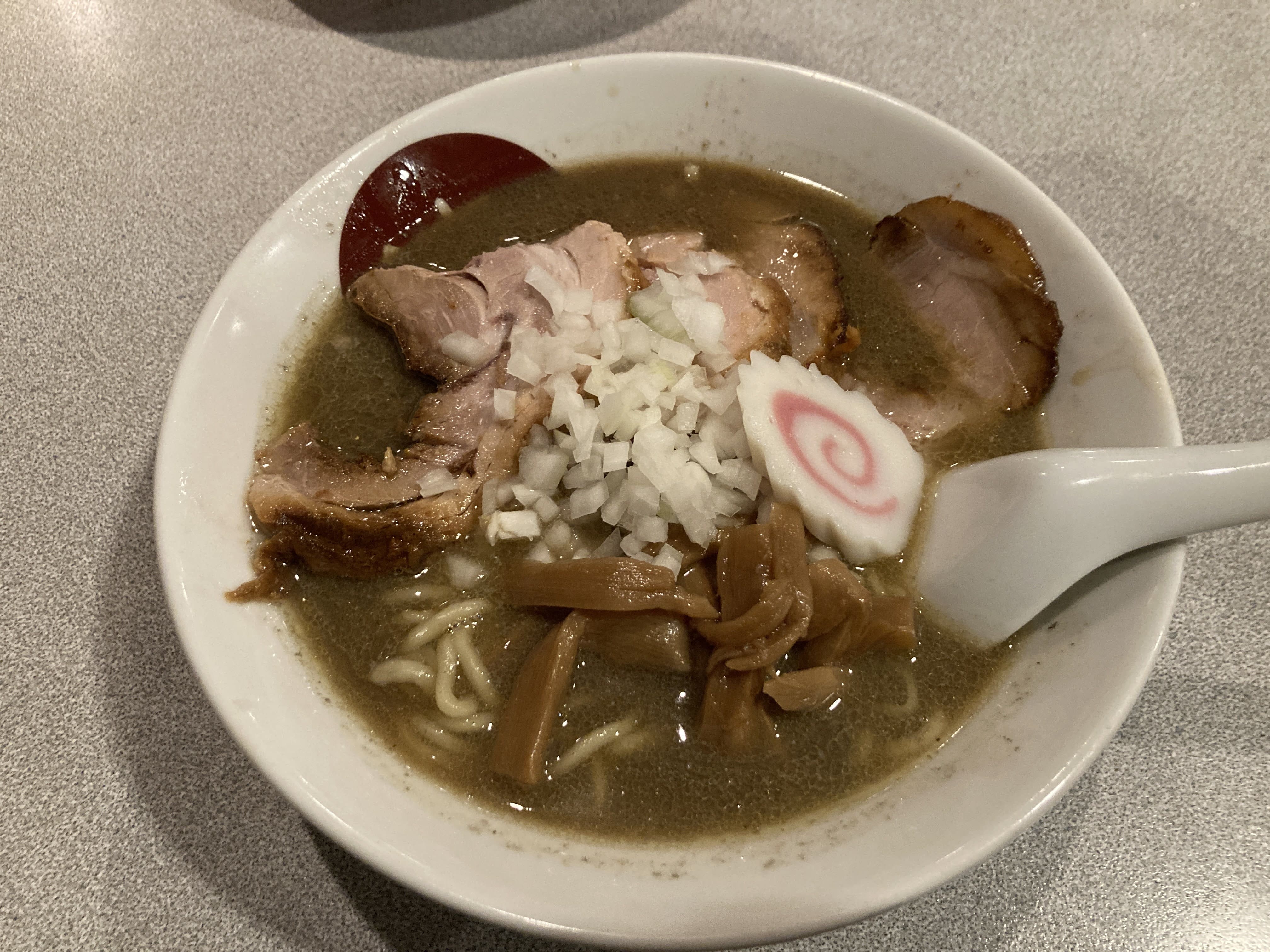 そして、この濃ゆい一杯の中で、刻み玉ねぎが良いアクセントになっていて、