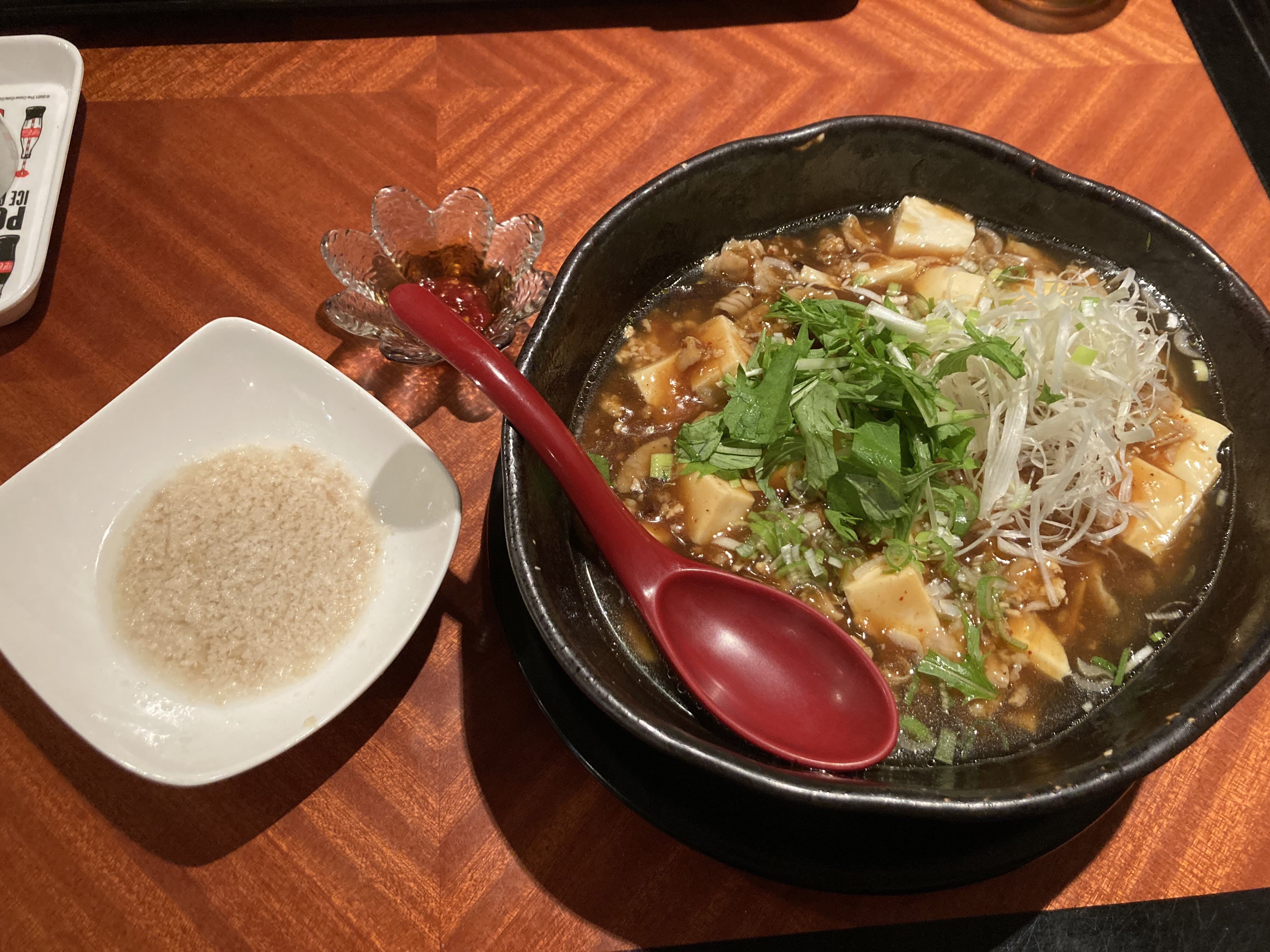 麻婆と豚モツという、それぞれが非常に主張の強いラインナップの中で、