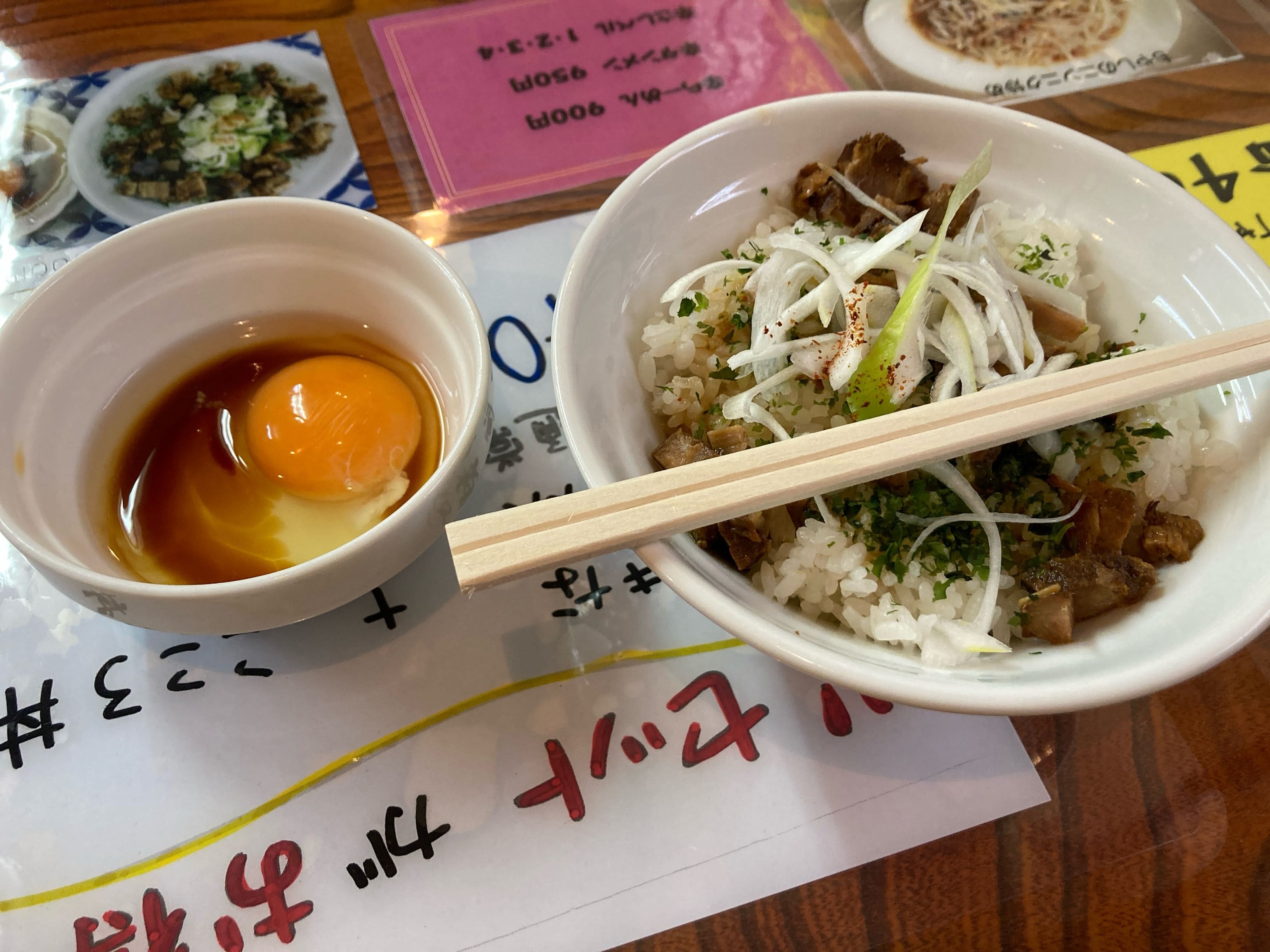 中華そばの濃厚さと、サイドメニューの卵かけご飯風のまろやかさ。